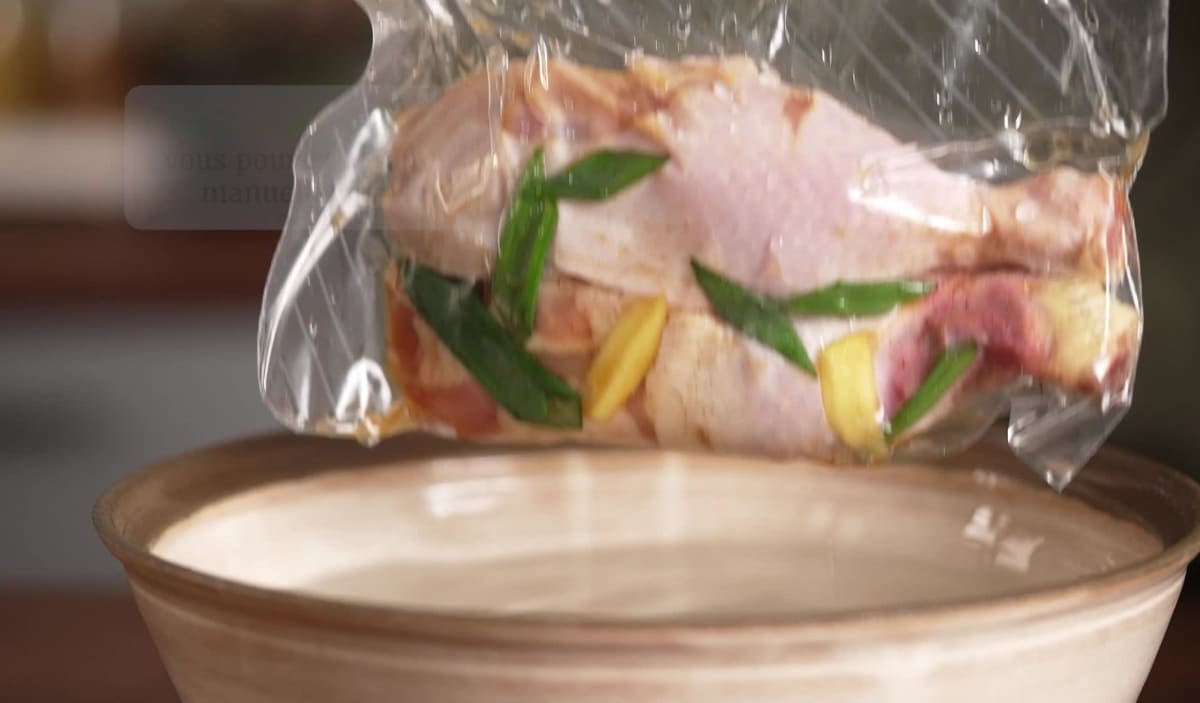 Ce mode vous permet de cuire vos aliments à des températures basses et contrôlées. Faites cuire de la viande, du poisson, des légumes et des fruits sous vide jusqu’à 12 heures à des températures entre 40 et 85°C pour des résultats extrêmement tendres et juteux. La cuisson sous vide préserve les nutriments des ingrédients et améliore les saveurs et arômes tout en réduisant le besoin d’ajouter trop de sel ou d’assaisonnement. Préparez des plats comme un chef et impressionnez vos invités avec le mode sous vide. Le couvre-lame éplucheur du Thermomix® améliorera encore plus votre expérience du sous vide.