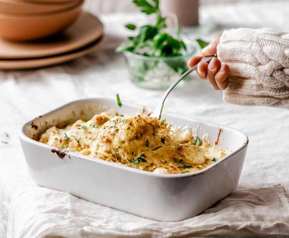 Gratin de carotte, patate douce et châtaigne, crème au roquefort