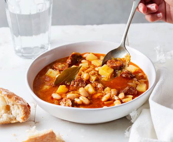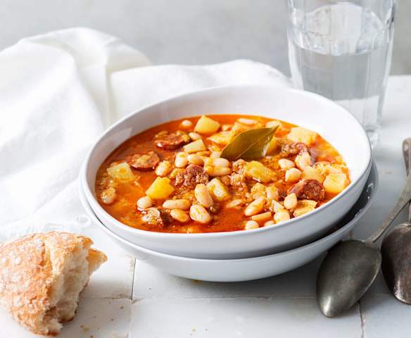 Soupe aux haricots blancs, pommes de terre et chorizo