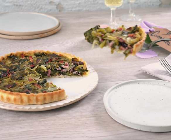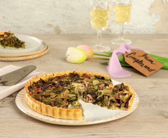 Torta salata scarola, olive e speck
